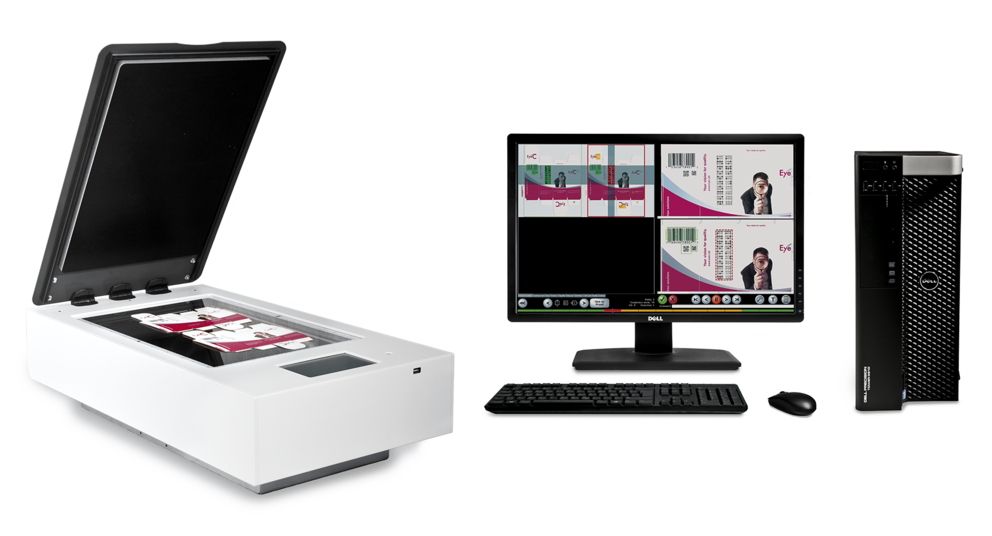 EyeC Proofiler ทุกเครื่องมาพร้อมกับเครื่องสแกนที่รวดเร็วและมีความละเอียดสูง ซึ่งใช้เพื่อให้ได้ภาพตัวอย่างงานพิมพ์คุณภาพสูง ด้วยเทคโนโลยีที่ได้รับการจดสิทธิบัตรโดย EyeC ระบบจะค้นหาทุกตัวอย่างหรือทุกๆ “ชุด” ในการทำซ้ำโดยอัตโนมัติ และตรวจสอบเนื้อหาเทียบกับต้นฉบับที่ลงนามแล้ว (โดยทั่วไปจะเป็นไฟล์ PDF) ข้อความ กราฟิก การเบี่ยงเบนสี โค้ด 1D และ 2D ที่พิมพ์ออกมา (บาร์โค้ด โค้ดเมทริกซ์ข้อมูล โค้ด QR) รวมถึงอักษรเบรลล์แบบนูนและแบบพิมพ์ ล้วนได้รับการตรวจสอบในตัวอย่างที่สแกนทั้งหมดในรอบการตรวจสอบครั้งเดียว